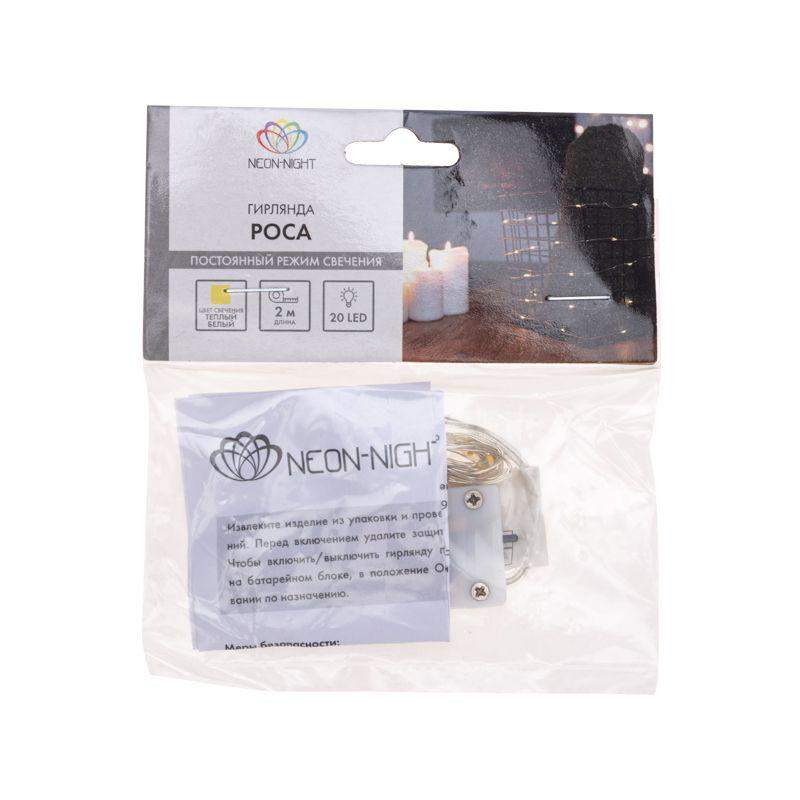 Гирлянда «Роса» длиной 2 метра — современное светодиодное украшение, которое не нуждается в подключении к стандартной электросети: питается от двух элементов типа CR2032, которые уже входят в комплект. Изделия на батарейках совершенно безопасны и подходят для оформления детских комнат. Серебристый провод обладает эффектом памяти изгибов, поэтому гирлянда подходит для создания сложных световых фигур. 20 диодов излучают белый теплый свет, имитируя россыпь золотистых огоньков.