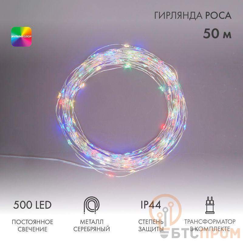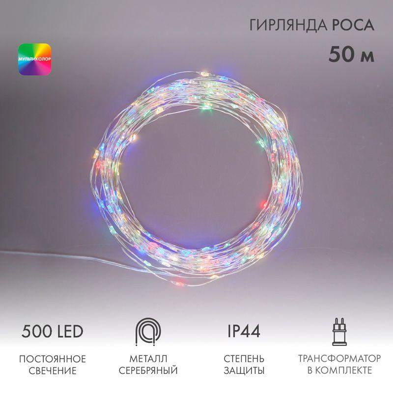 Гирлянда состоит из тонкого провода длиной 50 метров, с расположенными на нем 500 долговечными светодиодами в цвете мультиколор.<br />