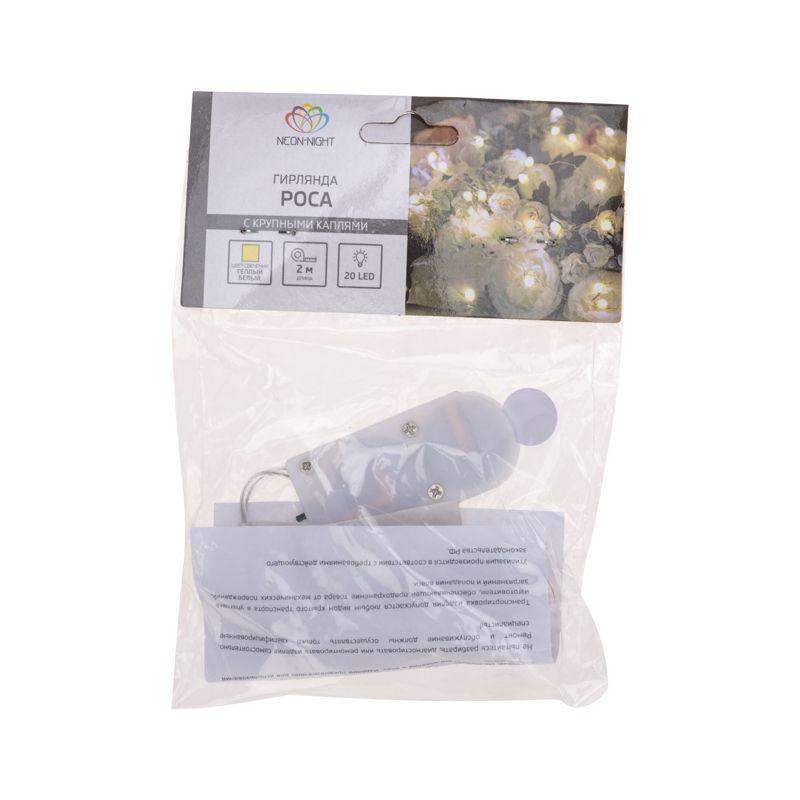 Гирлянда светодиодная "Роса" с крупными каплями 2м 20LED тепл. бел. IP20 2хCR2032 (в комплекте) Neon-Night 302-006