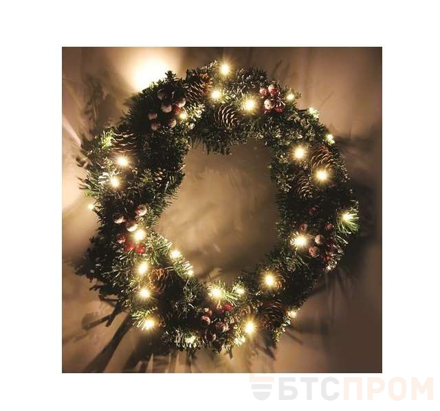 Гирлянда светодиодная "Рождественский венок" d30см 20LED бел. IP20 элементы питания 3хAA (не в компл.) КОСМОС KOCNL-EL139
