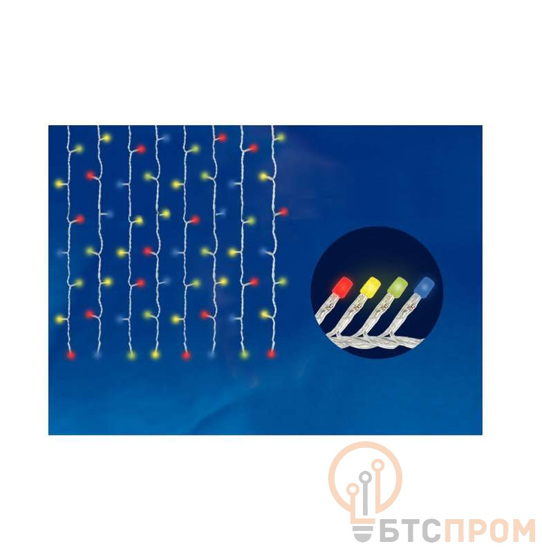 Гирлянда светодиодная с эффектом мерцания ULD-C2030-240/TWK MULTI IP67 от Uniel размером 3x2 метра с 240 разноцветными светодиодами. Белый провод. Эффект мерцания создает динамичный и праздничный занавес. Степень защиты IP67 позволяет использовать на улице. Идеальна для украшения фасадов, сцен, летних площадок кафе. Питание от 220 В. Соединяемая конструкция. Яркость и надежность для больших пространств.
