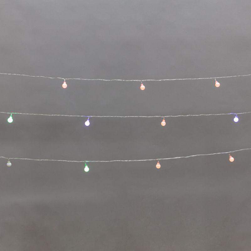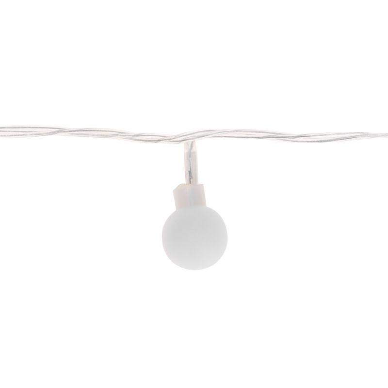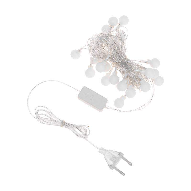 Светодиодная гирлянда Шарики длиной 5 метров выполнена в виде прозрачного ПВХ шнура с матовыми круглыми насадками, которые светятся разными цветами. Всего в гирлянде 20 светодиодов. Экономичные светодиоды не перегорают со временем и не нагреваются, поэтому украшение будет долгое время радовать своих обладателей. Изделие предполагает размещение внутри сухих отапливаемых помещений. Гирлянда питается от электросети с напряжением до 230 Вольт.
