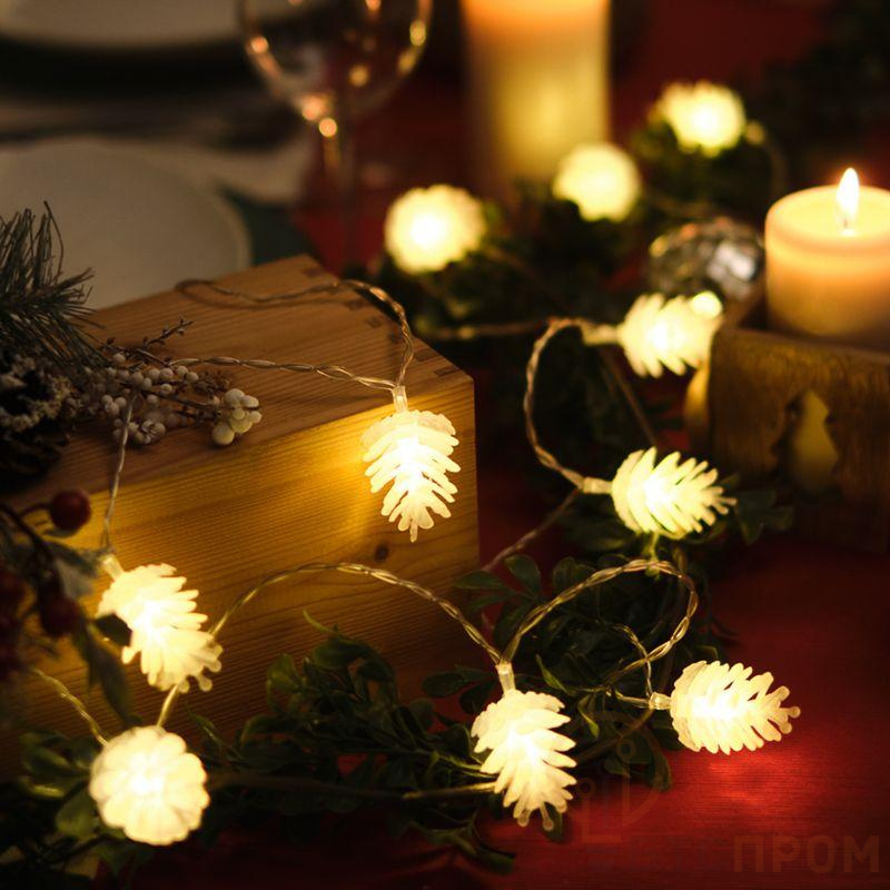 Светодиодная гирлянда «Шишки» длиной 5 метров — это эффектное украшение для новогодней ели, выполненное в традиционной новогодней тематике. 30 насадок в виде шишек находятся на электрическом кабеле на расстоянии 16 см друг от друга. Диоды, излучающие яркий белый свет теплого оттенка, получают питание от сети 230 В и управляются контроллером с 8 режимами. Смена динамики свечения создаст уникальное настроение и заразит весельем окружающих. Длина питающего шнура 1,2 метра. Защита IP20 предполагает использование в сухих отапливаемых помещениях.
