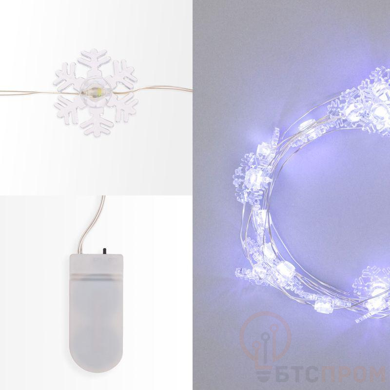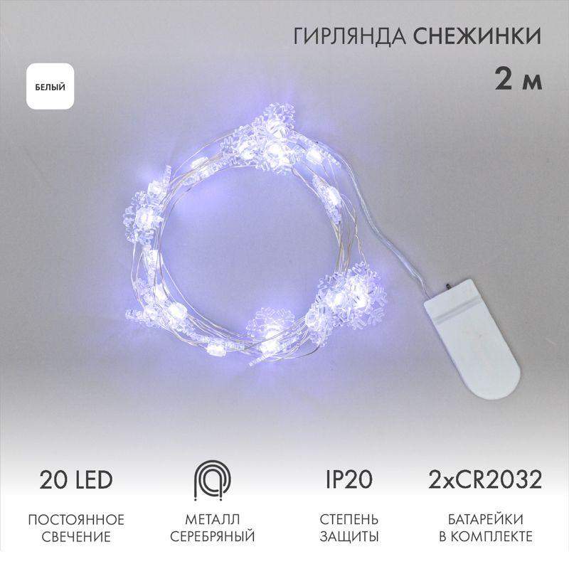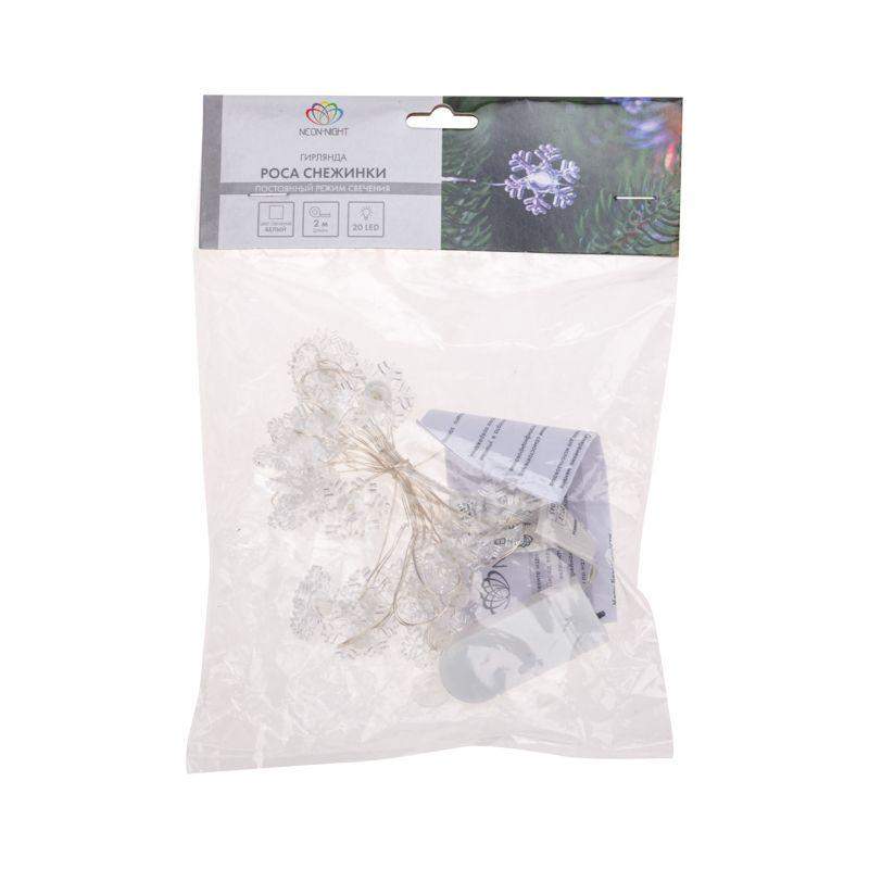 Гирлянда светодиодная "Снежинки" 2м 20LED бел. 2Вт 6В IP20 провод прозр. элементы питания 2хCR2032 (в компл.) Neon-Night 303-010