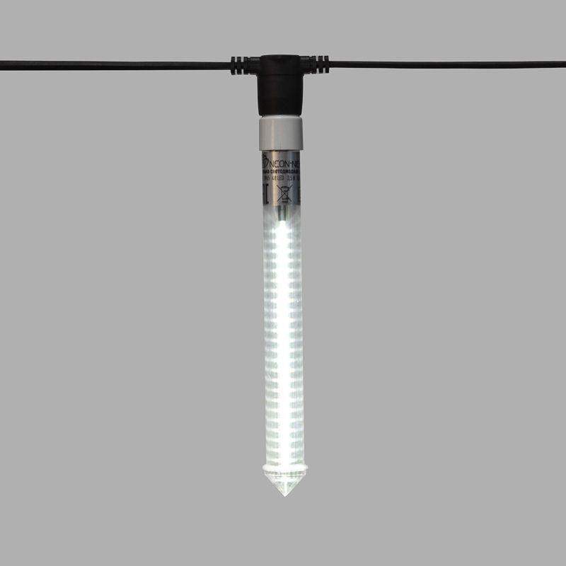 Светодиодная сосулька представляет собой прозрачную трубку длиной 100 см. Внутри каждой трубки установлена двусторонняя тонкая плата со светодиодами и микрочипом, который создает захватывающий эффект стекающей капли. Такой эффект оживляет пространство и создает магическую атмосферу. Длина трубки составляет 30 см. Сосулька оснащена стандартным цоколем Е27, что позволяет легко вкрутить ее в патрон гирлянды Белт-лайт.