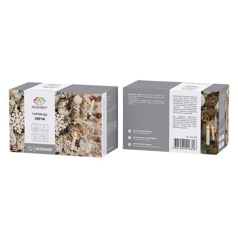Гирлянда светодиодная "Свечи" 10м 50LED тепл. бел. 4Вт 220-240В IP20 провод ПВХ темн. зел. Neon-Night 303-085