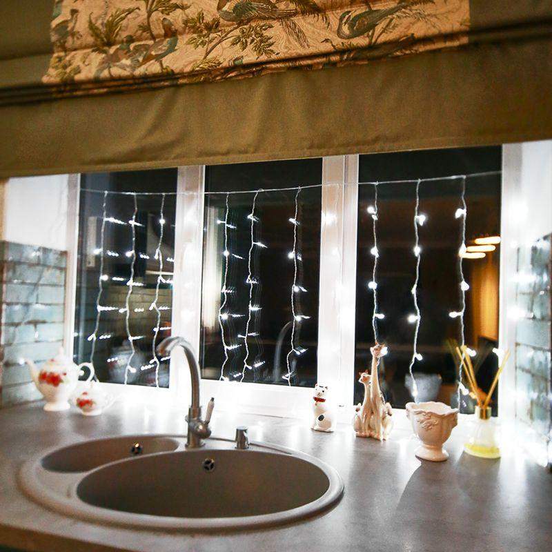 Гирлянда «Дождь» 1,5?1 м, выполнена в виде занавеса и прекрасно подходит для оформления окон в жилых и офисных помещениях. 96 светодиодов, излучающих белый свет, расположены по всей длине гибкого провода. Светодиоды практически не нагреваются во время работы, экономно расходуют энергию и ярко светят на протяжении всего срока службы. Отличительное преимущество интерьерных гирлянд: длина шнура питания 3 метра — этого достаточно, чтобы подключить изделие к розетке в любом удобном месте без использования удлинителей.