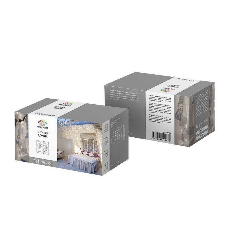 Гирлянда светодиодная "Светодиодный Дождь" 1.5х1м 96LED бел. 8Вт 230В IP20 с контроллером провод прозр. Neon-Night 235-025