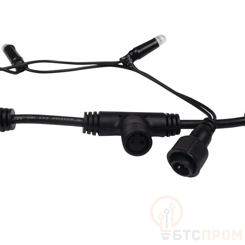 Гирлянда "Светодиодный Дождь" представляет собой гибкий горизонтальный шнур-шину (2м), к которому через определенные промежутки крепятся вертикальные нити (20 шт.) со светодиодными лампами, которые отличаются от «Бахромы» тем, что имеют одинаковую, достаточно значительную длину, часто превышающую протяженность шины. На концах каждой шины есть разъем и штепсель, которые предназначены для последовательного соединения нескольких световых дождей в большой занавес ПЛЕЙ-ЛАЙТ. Используя занавес, можно не только создавать красивые световые занавесы или оформлять различные плоскости, например, фасады домов, окна и т.д., но и украшать объемные объекты. Гирлянду, работающую в непрерывном свечении, называют фиксинг, а использующую режим светодинамики – чейзинг. Светодинамические эффекты становятся доступными только при подключении гирлянды к сети через специальный контроллер. Сегодня в гирляндах источником света служат светодиоды, которые пришли на смену применявшимся ранее лампам накаливания. С полупроводниковыми источниками гирлянда стала более надежной, потребляет меньше энергии, обрела более насыщенное сияние. Данная гирлянда имеет зеленый цвет свечения светодиодов.