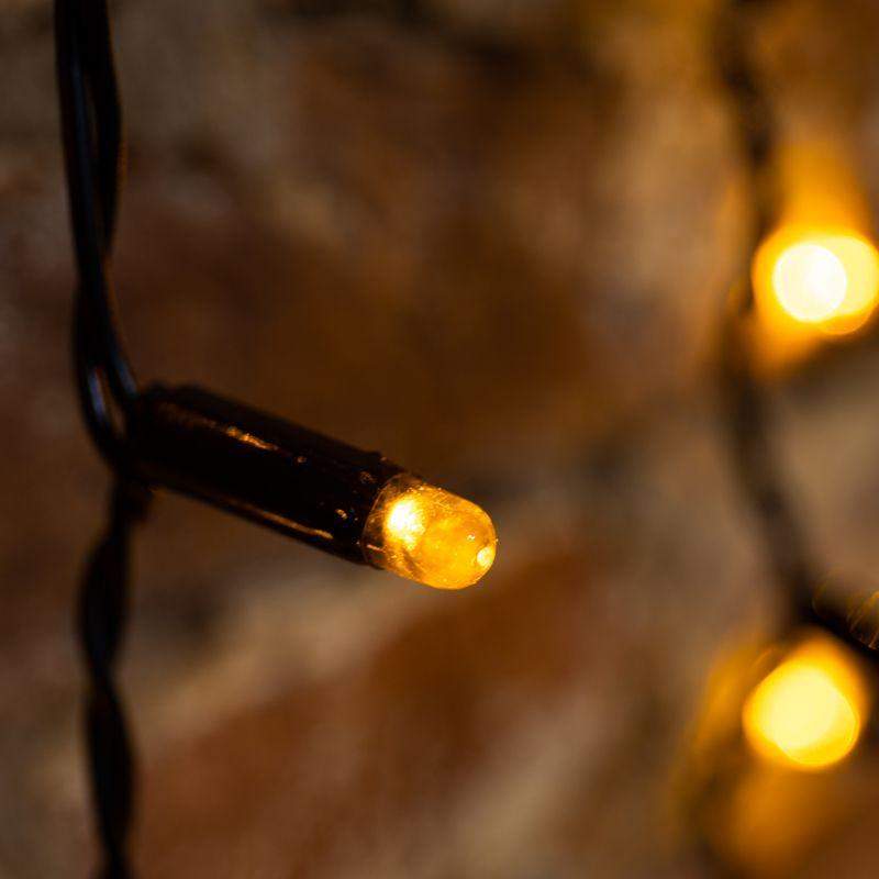 Гирлянда "Светодиодный Дождь" представляет собой гибкий горизонтальный шнур-шину (2м), к которому через определенные промежутки крепятся вертикальные нити (20 шт.) со светодиодными лампами, которые отличаются от «Бахромы» тем, что имеют одинаковую, достаточно значительную длину, часто превышающую протяженность шины. На концах каждой шины есть разъем и штепсель, которые предназначены для последовательного соединения нескольких световых дождей в большой занавес ПЛЕЙ-ЛАЙТ. Используя занавес, можно не только создавать красивые световые занавесы или оформлять различные плоскости, например, фасады домов, окна и т.д., но и украшать объемные объекты. Гирлянду, работающую в непрерывном свечении, называют фиксинг, а использующую режим светодинамики – чейзинг. Светодинамические эффекты становятся доступными только при подключении гирлянды к сети через специальный контроллер. Сегодня в гирляндах источником света служат светодиоды, которые пришли на смену применявшимся ранее лампам накаливания. С полупроводниковыми источниками гирлянда стала более надежной, потребляет меньше энергии, обрела более насыщенное сияние. Данная гирлянда имеет желтый цвет свечения светодиодов.