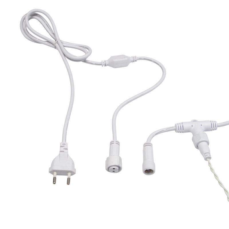 Светодиодная гирлянда Занавес (Дождь) представляет собой гибкий горизонтальный шнур-шину 2 м, к которому через определенные промежутки крепятся 16 вертикальных нитей равной длины со светодиодами. Гирлянда идеально подходит для украшения кафе, ресторанов, торговых центров, офисов и т.д. Предназначена для размещения как внутри помещений, так и снаружи. На концах шины располагаются коннекторы, которые предназначены для последовательного соединения нескольких гирлянд в большой занавес для украшения больших площадей или объемных объектов. Благодаря использованию светодиодов гирлянда отличается превосходной яркостью и низким энергопотреблением. Гирлянда имеет белый цвет свечения и обладает эффектом мерцания. Светодинамические эффекты становятся доступными только при подключении гирлянды к сети через специальный контроллер.