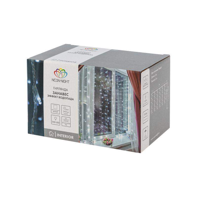 Гирлянда светодиодная "Светодиодный Дождь" 3х2м 240LED бел. 25Вт 230В IP20 эффект водопада провод прозр. Neon-Night 235-005