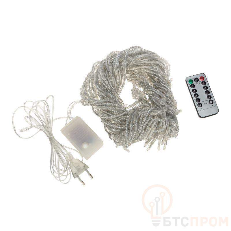 Гирлянда светодиодная "Светодиодный Дождь" 3х2м 240LED тепл. бел. 25Вт 230В IP20 эффект водопада провод прозр. Neon-Night 235-006