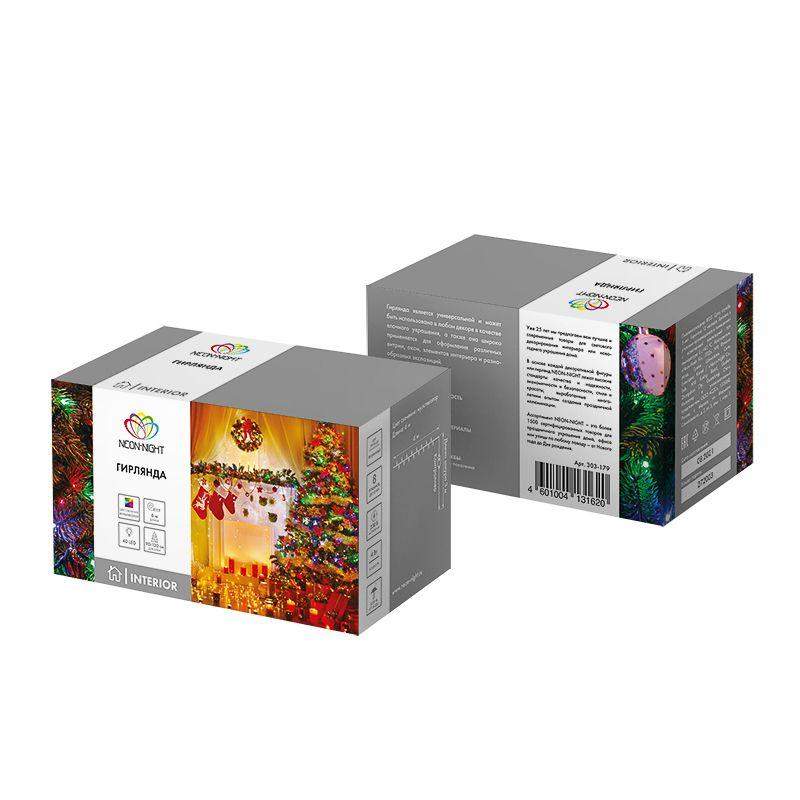 Гирлянда светодиодная "Твинкл Лайт" 6м 40LED мультиколор 5.1Вт IP20 провод ПВХ прозр. Neon-Night 303-179