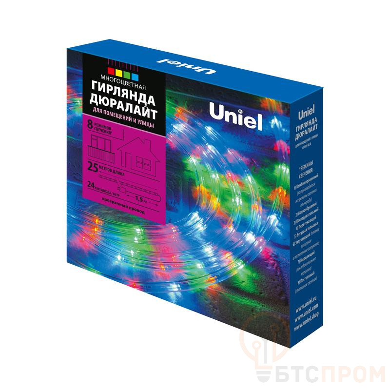Гирлянда светодиодная ULD-D50 25M/С08 IP44 MULTI Дюралайт 25м с контроллером разноцветный свет. провод бел. Uniel UL-00008574
