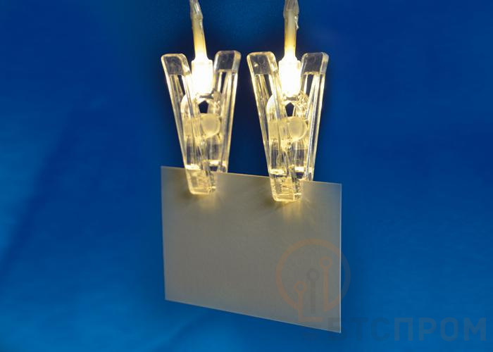 Гирлянда светодиодная ULD-S0200-010/STB/2AA WARM WHITE IP20 CLIPS на батарейках 2AA (не в компл.) «Прищепки» 2м тепл. бел. свет провод прозр. Uniel UL-00005484