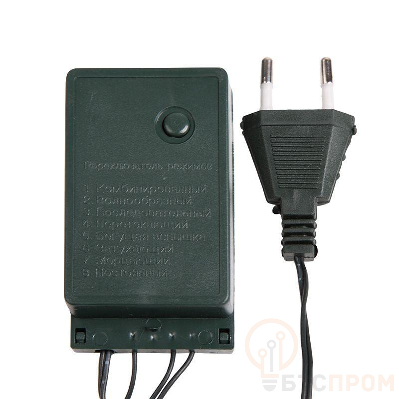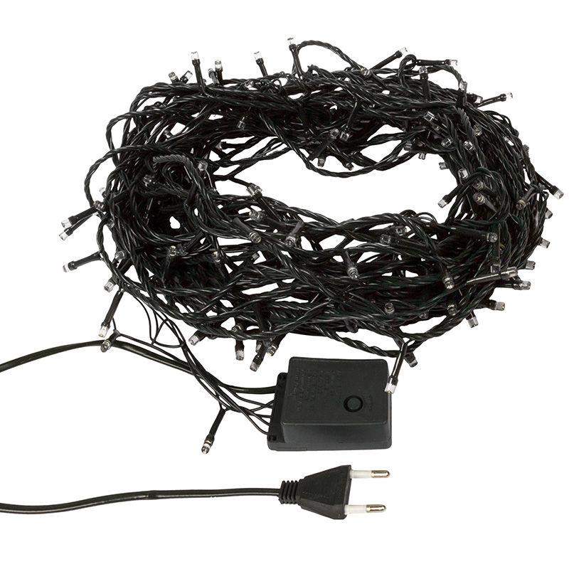 Универсальная светодиодная гирлянда длиной 12 метров c контроллером, прекрасно подойдет для украшения елки высотой до 2 метров, электрический кабель, защищенный оболочкой из ПВХ черного цвета, практически незаметен на фоне игольчатой кроны. 7 динамичных и 1 статичный режим свечения создадут праздничное настроение или подарят атмосферу спокойствия и уюта одним нажатием кнопки. Питание гирлянды от сети 230 В.