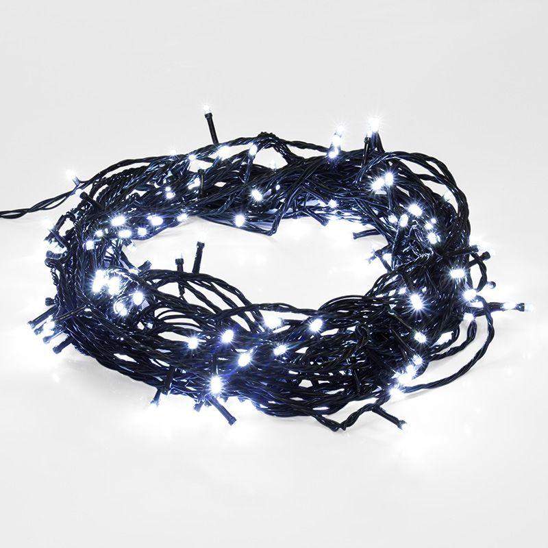 Универсальная светодиодная гирлянда длиной 20 метров создаст ощущение праздника в любом месте: квартире, офисе, студии, на даче. На шнуре из зеленого ПВХ равномерно расположены 200 ярких диодов, излучающих мягкий белый свет холодного оттенка. Контроллер с 8 режимами позволяет менять динамику в соответствии с настроением. Гирлянда имеет степень защиты IP20 и предназначена для использования в интерьере и сухих помещениях с умеренной влажностью. Украшение поможет выделить светом интерьерные детали и придаст обстановке торжественный вид. Питание гирлянды от сети 230 В.