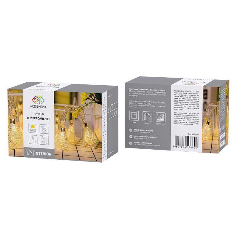 Гирлянда светодиодная "Восточные фонарики" 1.5м 10LED желт. 4Вт IP20 провод ПВХ прозр. элементы питания 2хAA (не в компл.) Neon-Night 303-071