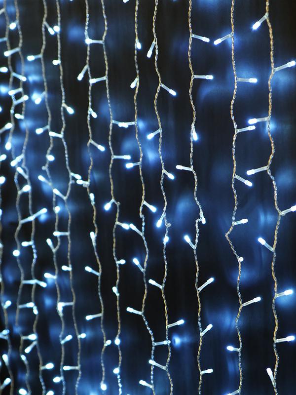 Гирлянда "Занавес" ICLLD300W-C (артикул 4690601052988) – это версия с 300 белыми светодиодами на полотне 3х3 метра. Мощное белое освещение может использоваться даже как основной или дополнительный источник света в комнате. Это эффектный и нестандартный способ осветить помещение, например, разместив занавес за прозрачной ширмой или в нише.