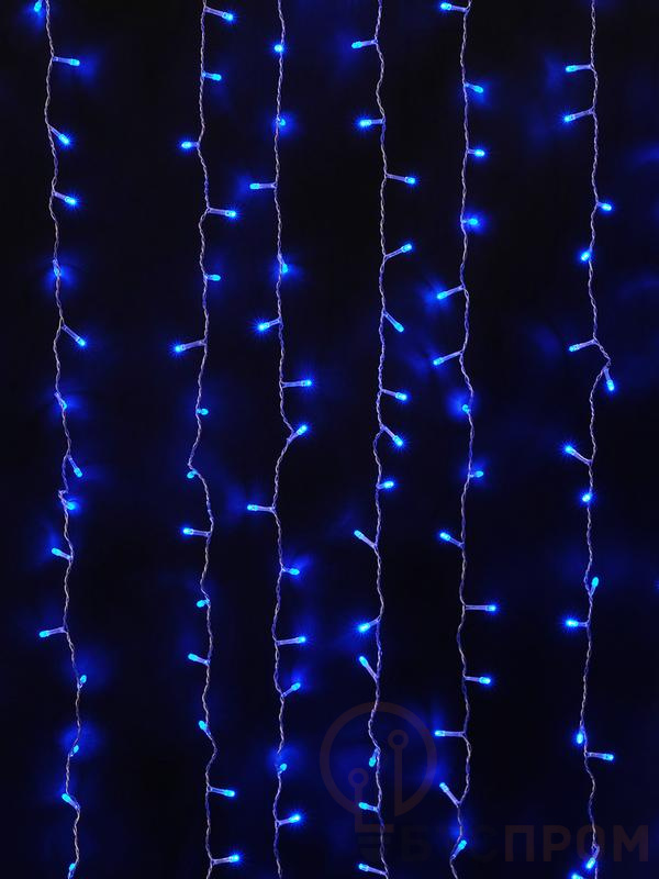 Гирлянда "Занавес" LDCL544-B-E — стильное светодиодное украшение, состоящее из 544 энергоэффективных синих светодиодов. Общая длина гирлянды составляет 1.5 метра при высоте 2.2 метра, что создает эффектный плотный световой занавес. Конструкция включает 16 независимых нитей, равномерно распределенных по всей ширине.