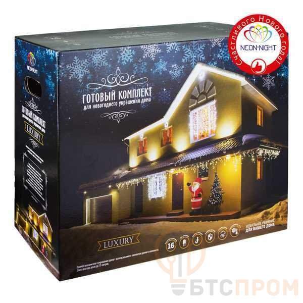 • Три облицовочные гирлянды «Бахрома» размером 4,8 м, которые станут прекрасным украшением крыши вашего дома.