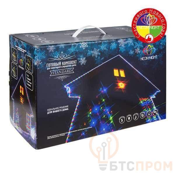 Особое очарование Новогодних праздников ощущаешь, находясь за пределами города. Заснеженный лес, нехоженые тропинки, чистый воздух и уединение. Но по-настоящему сказочная атмосфера рождается с заходом солнца, когда в свете фонарей начинают искриться снежинки, когда зажигается уютный камин и близкие собираются вместе. Чтобы придать своему дому индивидуальность и сделать его празднично-красивым не только внутри, но и снаружи, стоит подумать о его новогоднем декорировании. Мы предлагаем вам готовые решения, которые включают все самое необходимое для создания настоящей сказки. Наша продукция разработана с учетом многолетнего опыта украшений, как частных, так и городских объектов в условиях суровой российской зимы, поэтому спокойно выдерживает перепады температур до -40 оС! Комплект «Standard» - наш базовый набор. В нем мы собрали самые необходимые и в тоже время, разнообразные украшения дома с размером фасада до 10 метров. В набор мы включили: