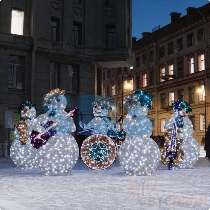 Яркие светодиодные снеговики - захватывающие 3D конструкции, отлично подходящие для украшения городской среды, входных групп, торговых объектов, парковых и пешеходных зон. Изделия состоят из надежного и легкого алюминиевого каркаса, не требующего окрашивания. Поверх него закреплен блестящий и крепкий мишурный ковер на металлической проволоке. Светотехника профессиональной серии с напряжением в 24 Вольта, степенью защиты 65 IP и резиновым проводом абсолютно безопасна для людей и не боится плохих погодных условий, выдерживает температуру до -50 градусов. Тип свечения может быть как статическим так и динамическим. Изящный световой эффект не оставит равнодушными прохожих, а необычная, внушающих размеров мишурная фигура поднимет настроение взрослым и детям, создаст атмосферу Нового года и Рождества.