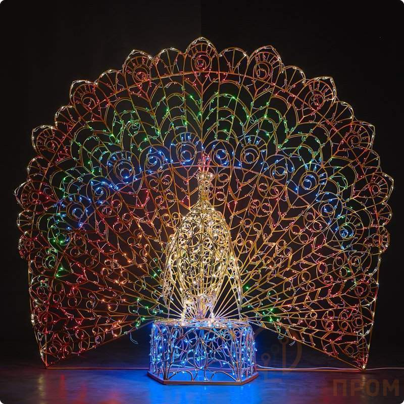 Изготовлена из термообработанной проволоки ГОСТ 3282-74 диаметром 6-8 мм. IK 10 (коэффициент вандалоустойчивости). Блок питания входит в комплект. Фигура декорирована светодиодами с защитой IP 67 повышенного свечения. Свечение