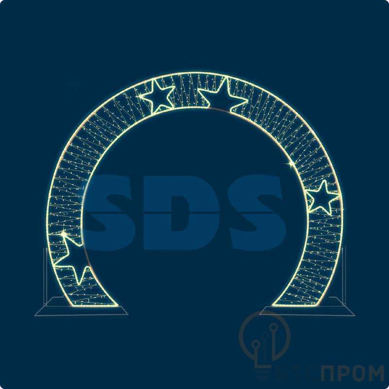 Каркасные плоские LED арки создают праздничную атмосферу на городских улицах и площадях, в парках и скверах, на бульварах и аллеях. Конструкция состоит из алюминия, который не ржавеет. Гирлянды на резиновом проводе обладают долгим сроком службы, их степень защиты составляет 65 IP, они абсолютно безопасны для людей, т.к. имеют напряжение 24 Вольта. Яркая и красочная фигура будет радовать прохожих своей оригинальностью, может выступать в качестве необычной фотозоны.