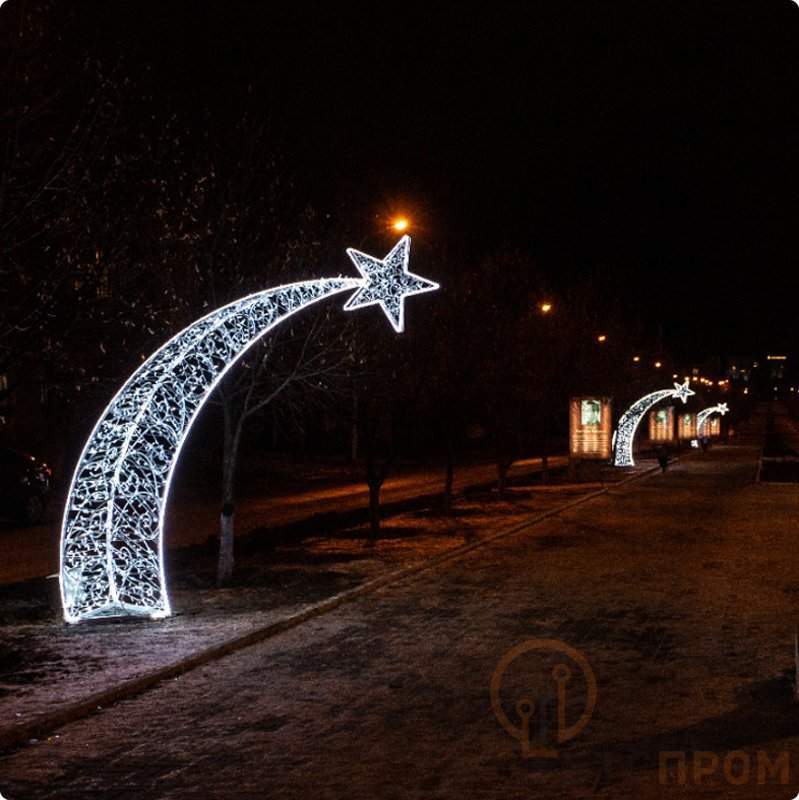 Украшена светодиодами с защитой IP 67 повышенного свечения. Свечение статично. Напряжение 12В. Блок питания входит в комплект.