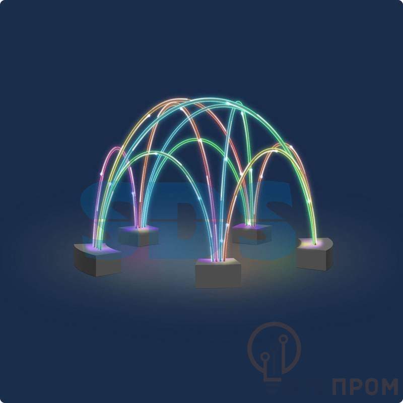 Световые фонтаны - новогодняя светодиодная инсталляция для размещения на улицах города, отличное решение для оформления площадей, парков и скверов. Изготавливается из прочного и легкого алюминиевого каркаса, который не поддается коррозии. Гирлянды профессиональной серии имеют напряжение 24 Вольта, резиновый провод и высшую степень защиты в 65 IP, благодаря чему фигура выдерживает даже самые неблагоприятные погодные условия и служит много лет. Светодинамика может быть как мерцающей, так и иметь эффект постоянного свечения. По вечерам конструкции притягивают к себе людей, становятся центром внимания, праздничными фотозонами, поднимают настроение и создают атмосферу праздника.