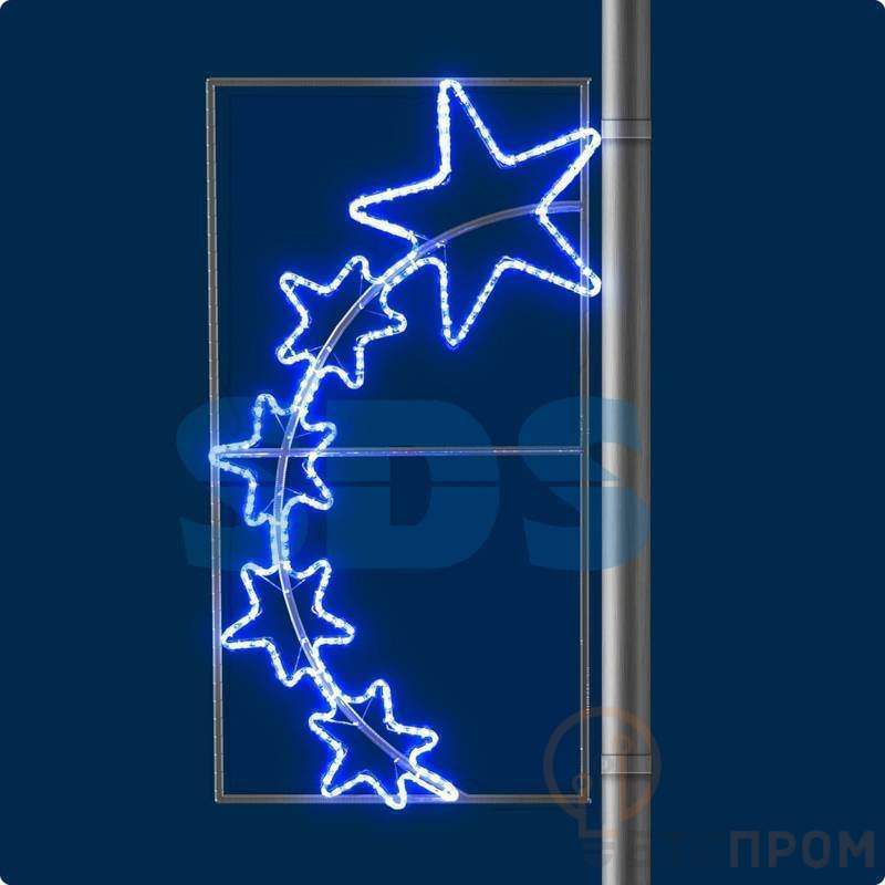 Выносные консоли для опор освещения - украшают фонари вдоль улиц и проспектов, освещают пешеходные дорожки в парках и скверах, подсвечивают фасады и окна зданий. Выполнены из прочного и лёгкого алюминиевого каркаса хорошо отражающего иллюминацию изделие не ржавеет, не требует покраски. Светотехника профессиональной серии из резинового провода ярко светит при любых погодных условиях, потребляет мало энергии. служит много лет. Конструкция создаст атмосферу рождественского праздника в вечернем городе.