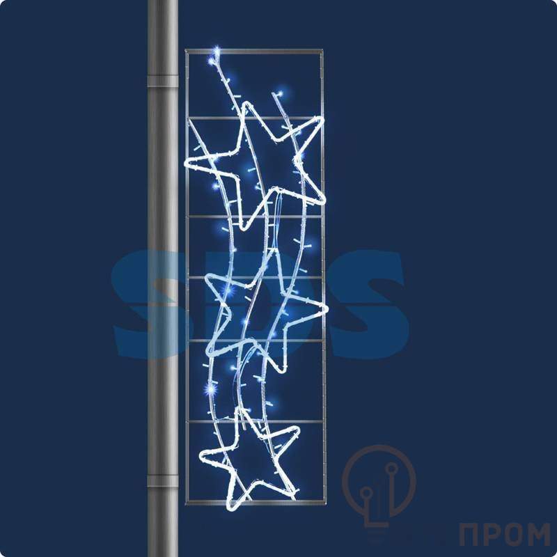 Выносные консоли для опор освещения - украшают фонари вдоль улиц и проспектов, освещают пешеходные дорожки в парках и скверах, подсвечивают фасады и окна зданий. Выполнены из прочного и лёгкого алюминиевого каркаса хорошо отражающего иллюминацию изделие не ржавеет, не требует покраски. Светотехника профессиональной серии из резинового провода ярко светит при любых погодных условиях, потребляет мало энергии. служит много лет. Конструкция создаст атмосферу рождественского праздника в вечернем городе.