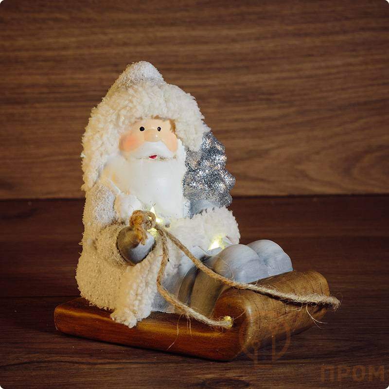 Керамическая фигурка «Дед Мороз на санях» 13×9,5×14 см подарит ощущение новогодней сказки, гармонично украсив интерьер детской, гостиной, столовой. Изделие работает от двух батареек типа LR44, которые размещаются в отсеке в нижней части конструкции. Там же находится удобная кнопка для включения и выключения подсветки. 1 яркий экономичный светодиод излучает теплый белый свет, эффектно обрамляя композицию. Декоративная фигурка выполнена из экологичных материалов и покрыта безопасным нетоксичным красителем.