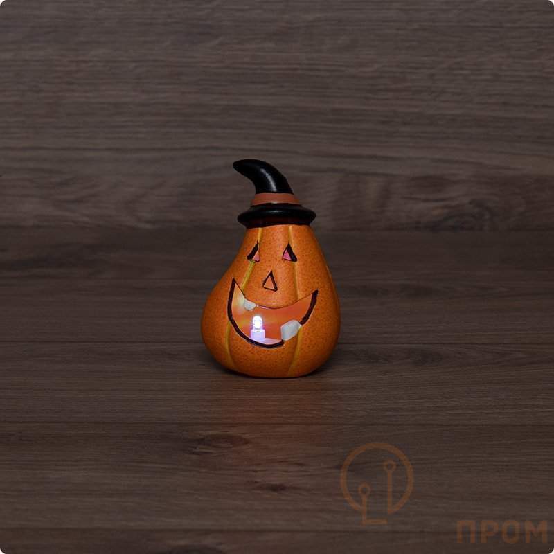 Керамическая фигурка «Тыква в шляпе» 7.1×6.7×10.8 см — забавное интерьерное украшение, способное поднять настроение и почувствовать особую атмосферу надвигающегося праздника. Изделие выполнено в тематике Хэллоуина и станет отличным подарком как детям, так и взрослым. Внутри фигурки располагается 1 диод, светящийся разными цветами в хаотичном режиме. В батарейный отсек устанавливаются 2 элемента питания типа LR44, которые уже идут в комплекте. В нижней части находится выключатель ON/OFF.