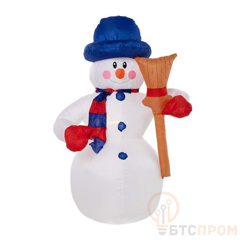 Надувная 3D-фигура «Снеговик с метлой» высотой 120 см встретит ваших гостей на уличной площадке, в холле коттеджа или прихожей и станет главным хозяином веселого праздника. Добрый улыбающийся персонаж выполнен из прочного синтетического материала — капрона. За поддержание постоянного объема воздуха во внутренней полости отвечает мощный компрессор, идущий в комплекте. Чтобы фигуру, установленную на улице, не унесло ветром, предусмотрен надежный крепеж. Три диода обеспечивают яркую подсветку, создающую эффект объемного контура. Изделие защищено от влаги и пыли по стандарту IP65.