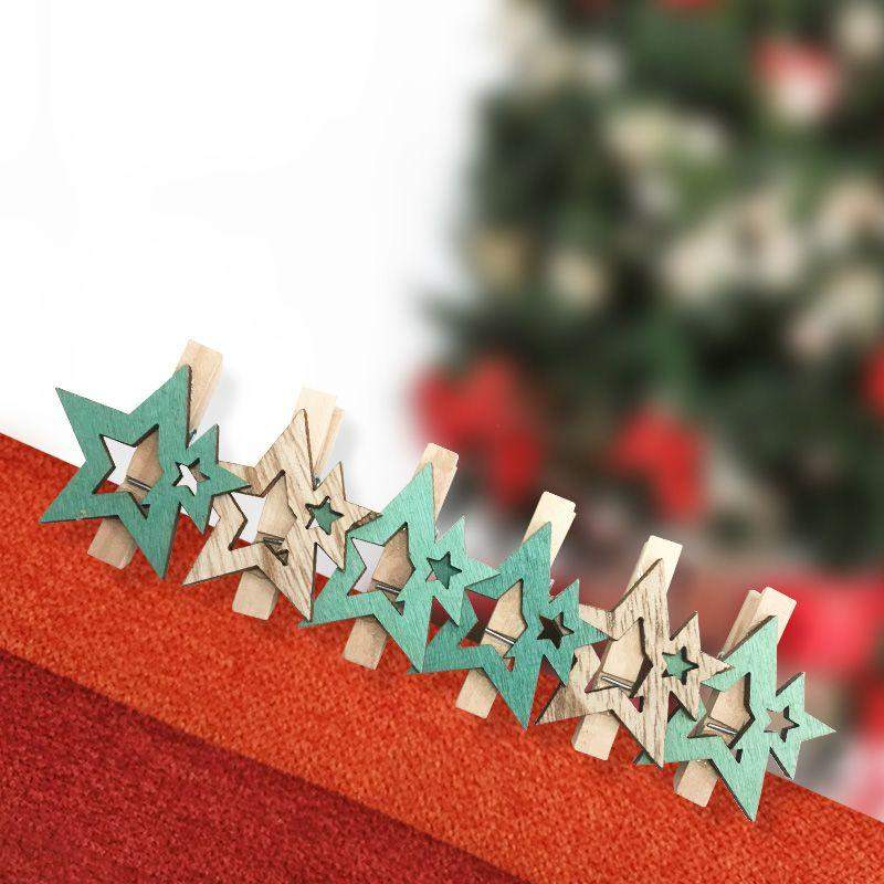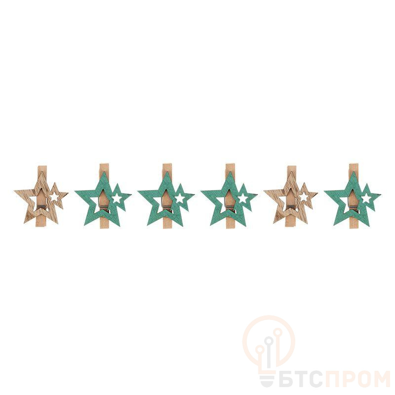 Деревянные прищепки «Звездочки», каждая из которых имеет размер 4,4x3,9x1,4 cм, выполнены в приятных бирюзовых тонах. В набор входят 6 изделий, произведенных из экологичного материала — природной древесины. Поверхность фигурок покрыта нетоксичным красителем, состав которого продлевает срок службы декора. Прищепки станут милым интерьерным украшением, помогут упаковать рождественские подарки родным и близким, надежно закрепят светодиодную гирлянду на пушистых еловых ветках. Набор станет приятным сюрпризом к празднику для детей и взрослых.