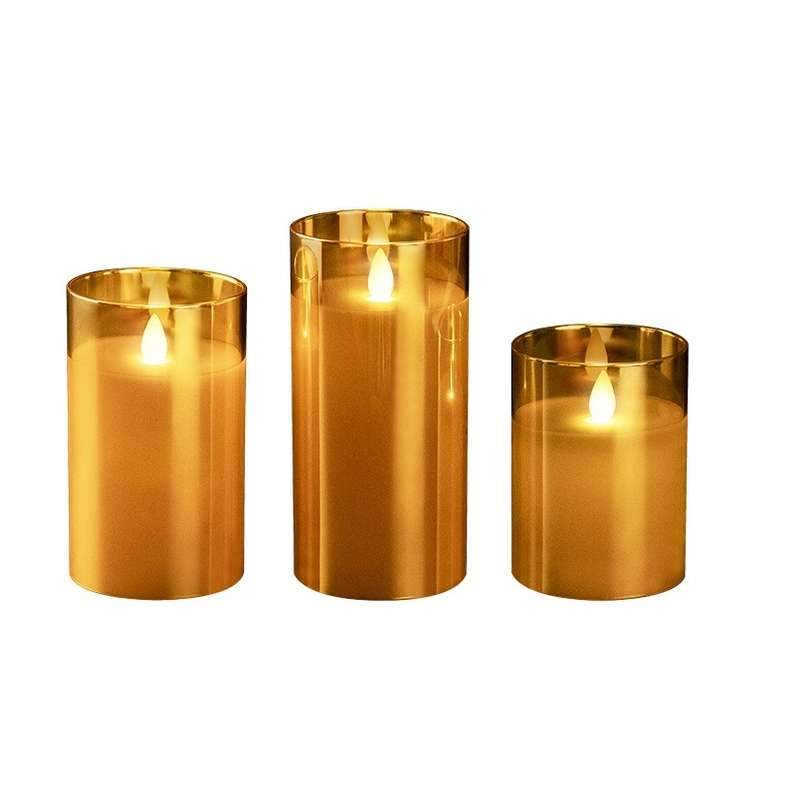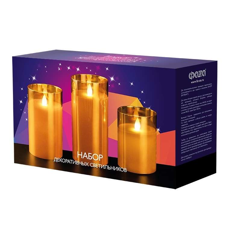 Восковые светодиодные свечи в корпусе из декоративного стекла Необыкновенный эффект «живого пламени» В комплект 3 свечи разной высоты (10см, 12.5см, 15см) Предназначены для декоративного освещения внутри помещений Создают ощущение праздника и уюта, романтической и торжественной обстановки. Пожаробезопасны. Нет открытого огня, нет риска возгорания, нет восковых следов. Очень экономичны (светодиоды с малым потреблением энергии).