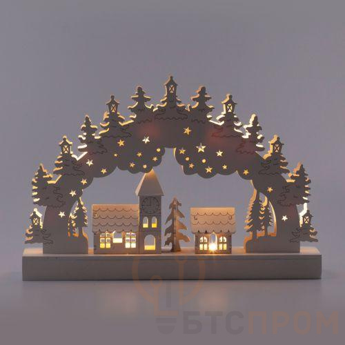 Праздничная светодиодная фигура ЭРА EGNDS-02 "Зима" (арт. <small>Б0051929) размером</small> 30 х 20 см с приятным теплым светом создаст в вашем доме неповторимую новогоднюю атмосферу. Этот деревянный декоративный светильник украсит любую комнату, включая спальню: приглушенный свет позволяет использовать его в качестве ночника. Светильник работает от 2 батареек AA и имеет класс защиты IP20 (рекомендуется использовать внутри помещений). Настольный зимний светильник с домиками и елочками - это отличный подарок на Новый год и Рождество для любимых. Такой новогодний декор для дома всегда дарит ощущение праздника!