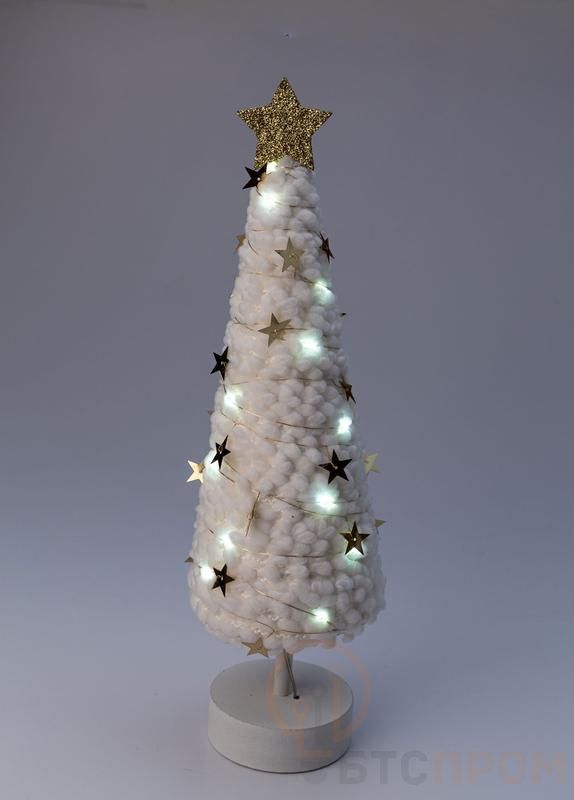 Настольный светильник "ЕЛОЧКА" KOC_TAB-B105. Коллекция настольных елочек Космос - это не традиционные новогоднии деревья, а модное украшение и настольный светильник. Высота 38см и 11см в диаметре. Как легкое белое облачко сияет 20 светодиодами теплого белого света, которые отражаются в дополнительном золотистом декоре в виде маленьких звездочек. Плюшевая елочка на белом деревянном основании и звездой на макушке украсить собой новогодний стол, любую полочку или подоконнник, вернет в детство, где повсюду были напоминания о любимом празднике. Работает от батареек АА