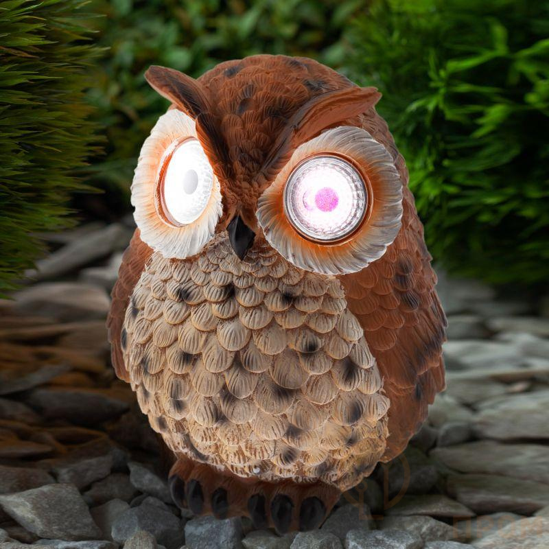 Садово-парковый светильник ERAFYS01-10 Рыжая сова станет эффектным обитателем Вашего участка. Небольшие размеры позволят разместить светильник в палисаднике, украсить пруд, веранду, кустарник, изящно подсветить аллею или вход в дом. Фигурка из искусственного камня высотой 19 см с легкостью устанавливается в землю. LED светильник функционирует на солнечной батарее. Такой способ получения энергии является самым экологичным, энергоемким, а также бесшумным. Питание происходит во включенном режиме, днем. С наступлением ночи забавная рыжая сова просыпается. Участок вокруг нее начинает освещаться белым светом, исходящим из глаз. Создается сказочная атмосфера. Кроме того, четкая проработка деталей фигурки делает ее максимально реалистичной. Обращаем Ваше внимание, что перед использованием фигурки её необходимо включить и зарядить. Светильник заряжается в течение всего светового дня. Работа от солнечной батареи предусматривает 8 часов непрерывной работы. Высокая степень защиты от пыли и влаги позволяет оставлять светильник на улице даже во время дождя. Декоративный светильник от компании ЭРА чудесный вариант для преображения Вашего сада.