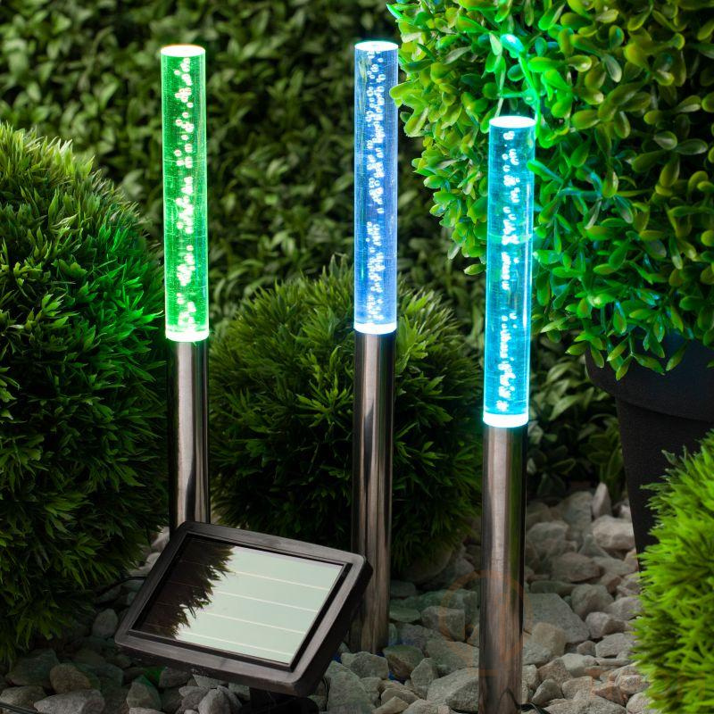 Беспроводной led светильник ERASF024-21 "Пузырьки" станет эффектным украшением вашего сада. В комплект входит 3 светильника, соединенных между собой. Общая длина в 144 см позволит Вам разместить конструкцию в саду, украсить декоративный пруд или бассейн, необычно подсветить дорожку или придомовую территорию. Фигурки из ударопрочного пластика высотой 38 см с легкостью вставляются в землю. Садовый светильник функционирует на солнечной батарее. Такой вид получения энергии является наиболее экологичным, энергоемким, а также бесшумным. Питание происходит во включенном режиме, днем. Самое интересное начинается после захода солнца. Пузырьки начинают медленно переливаться желтым, зеленым и оранжевым цветами. Такое световое шоу будет эффектно смотреться в особо затемненных местах участка. Эффект пузырьков придает светильнику особой динамики. Работа от солнечной батареи рассчитана 8 часов непрерывной работы. Высокий уровень пыле и влагозащиты позволяет оставлять светильник на улице даже во время дождя. Обращаем Ваше внимание, что перед использованием фигурки её необходимо включить и зарядить. Светильник заряжается в течение всего светового дня. Декоративный светодиодный светильник от бренда ЭРА лучший вариант для украшения Вашей территории.