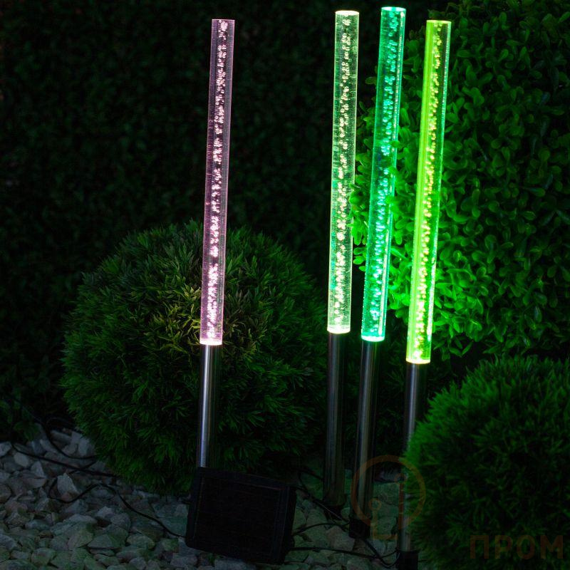 Садово-парковый светодиодный светильник ERASF024-22 "Пузырьки" станет необычным источником света для Вашего сада. В комплект входит 4 светильника, соединенных между собой. Оптимальная длина позволит Вам разместить конструкцию в палисаднике, украсить декоративный пруд или бассейн, необычно подсветить тропинку или придомовую территорию. Фигурки из ударопрочного пластика высотой 53 см с легкостью втыкаются в землю. Беспроводной LED светильник работает от солнечной батареи. Данный вид получения энергии является наиболее экологичным, энергоемким, а также бесшумным. Питание происходит во включенном режиме "ON", днем. Самое интересное начинается с наступлением темноты. Пузырьки начинают медленно переливаться желтым, зеленым, фиолетовым, розовым и оранжевым цветами. Такое световое шоу будет лучше всего смотреться в особо затемненных местах. Эффект пузырьков придает светильнику динамики, привлекает внимание. Работа от солнечной батареи рассчитана 8 часов непрерывной работы. Высокий показатель пыле и влагозащиты позволяет оставлять светильник на улице в непогоду. Обращаем Ваше внимание, что перед использованием фигурки её необходимо включить и зарядить. Светильник заряжается в течение всего светового дня. Уличный светодиодный светильник от бренда ЭРА лучший вариант для украшения Вашего сада.