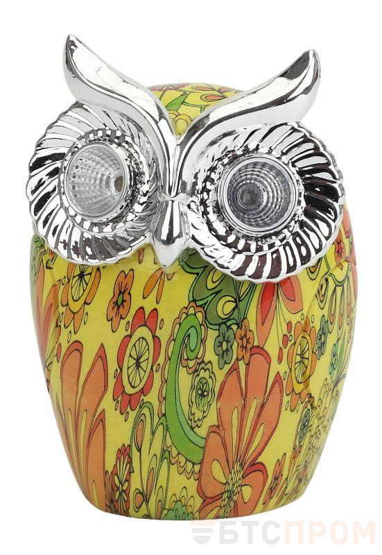 Садово-парковый светильник ERAFYS01-01 "Филин" станет чудесным украшением на вашей загородной территории. Небольшие габариты позволят Вам расположить светильник в палисаднике, украсить прудик, необычно подсветить цветы или вход в дом. Фигурка из полистоуна высотой 16 см с легкостью устанавливается в землю. LED светильник функционирует на солнечной батарее. Такой вид получения энергии является самым экологичным, энергоемким и бесшумным. Питание происходит во включенном режиме, в светлое время суток. С наступлением темноты филин "просыпается". Его большие глаза начинают сиять ярким белым светом, создавая таинственную атмосферу на участке. Пестрый желтый рисунок в виде цветов на корпусе будет прекрасно гармонировать с окружающей филина растительностью. Уличный светильник рассчитан на 8 часов непрерывной работы. Высокая степень пыле и влагозащиты позволяет оставлять устройство на месте даже в дождливую погоду. Обращаем Ваше внимание, что перед использованием фигурки её необходимо включить и зарядить. Светильник заряжается в течение всего светового дня. Декоративный светильник "Филин" на солнечной батарее от компании ЭРА лучший вариант для украшения Вашей территории!