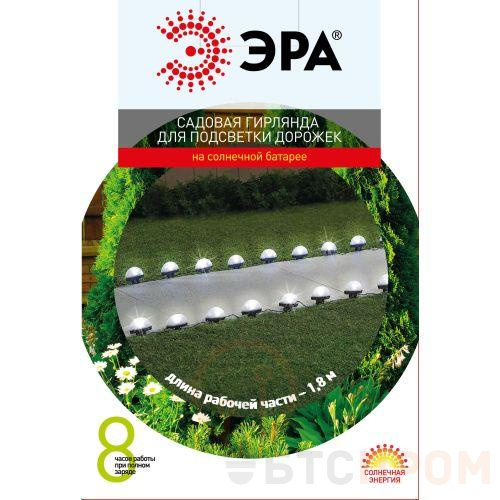 Светильник садовый Гирлянда для подсветки дорожек 3.8м (длина рабочей части 1.8м) 10LED на солнечной батарее Эра Б0062367