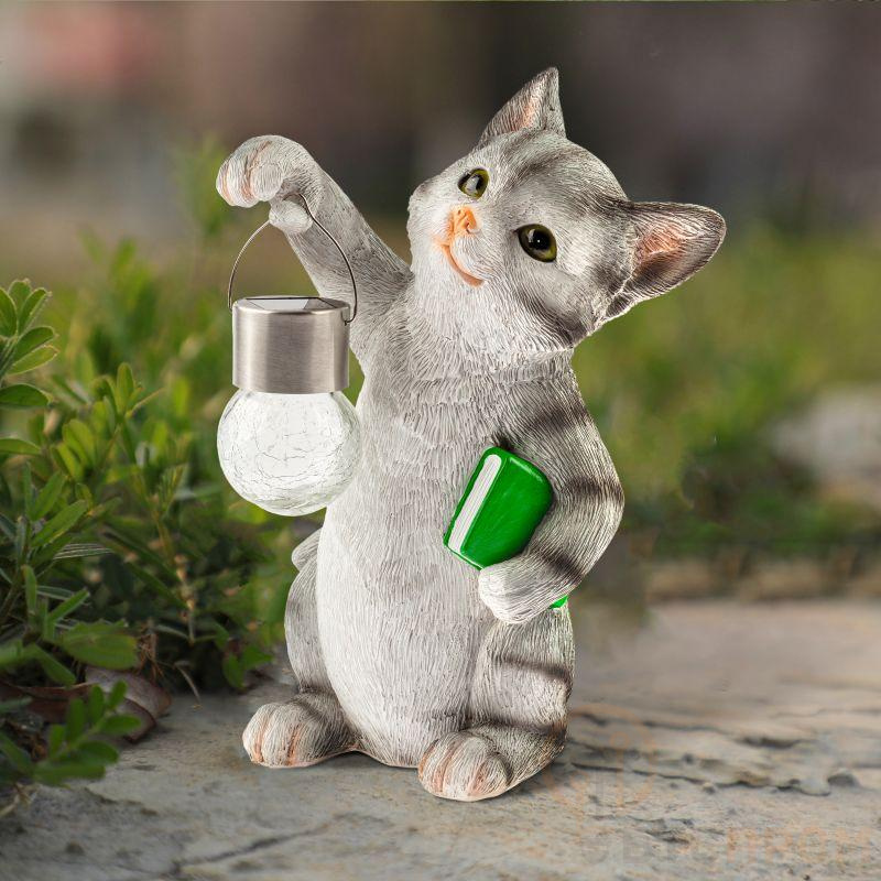 Светильник светодиодный садовый ERASF22-10 "Умный кот" 28см уличный на солнечн. батарее Эра Б0053355