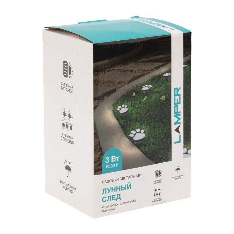 Светильник светодиодный садовый "Каскад Лунный След" 5м LED холод. бел. 3Вт IP65 с выносной солнечн. панелью 2м; аккум. монтаж в грунт 2 режима работы: мигание и постоян. свечение Lamper 602-245