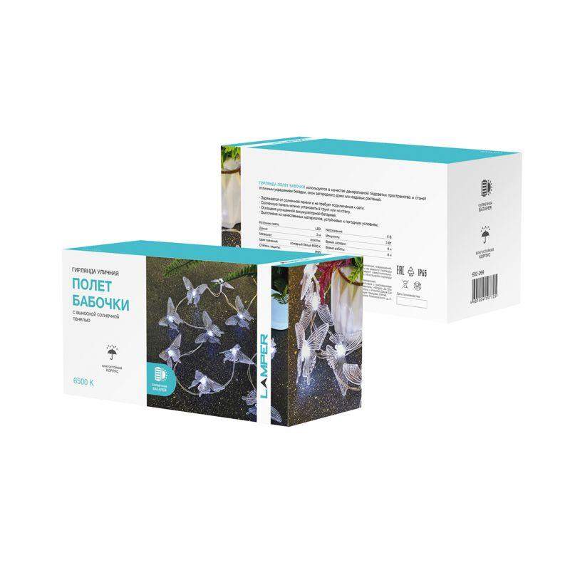Светильник светодиодный садовый "Каскад Полет бабочки" 3м LED тепл. бел. 3Вт IP65 с выносной солнечн. панелью; аккум. Lamper 602-269