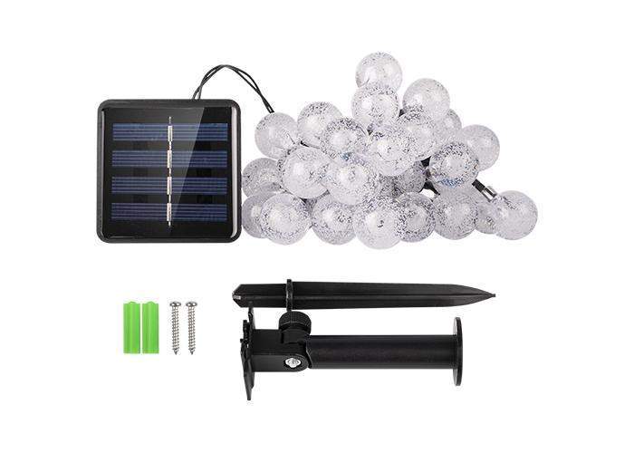 Светодиодный светильник-гирлянда "КРИСТАЛЛИЧЕСКИЕ ШАРИКИ" с солнечной батареей. Предназначен для декоративной подсветки кустарников, альпийских горок, террас, веранд на садовых и дачных участках, балконов и т.п. Автоматическое включение/выключение при наступлении темного/светлого времени суток (датчик освещенности) 8 режимов работы: комбинированный, волнообразный, последовательный, перетекающий, бегущая вспышка, затухающий, мерцающий, постоянный. Время непрерывной работы при полностью заряженном аккумуляторе 8 часов. Материал корпуса светодиодной панели и колышка – ABS-пластик, в гирлянде используется медный провод. Светильник можно устанавливать в грунт и на вертикальную поверхность. Крепеж (два самореза и дюбеля) входит в комплект поставки.
